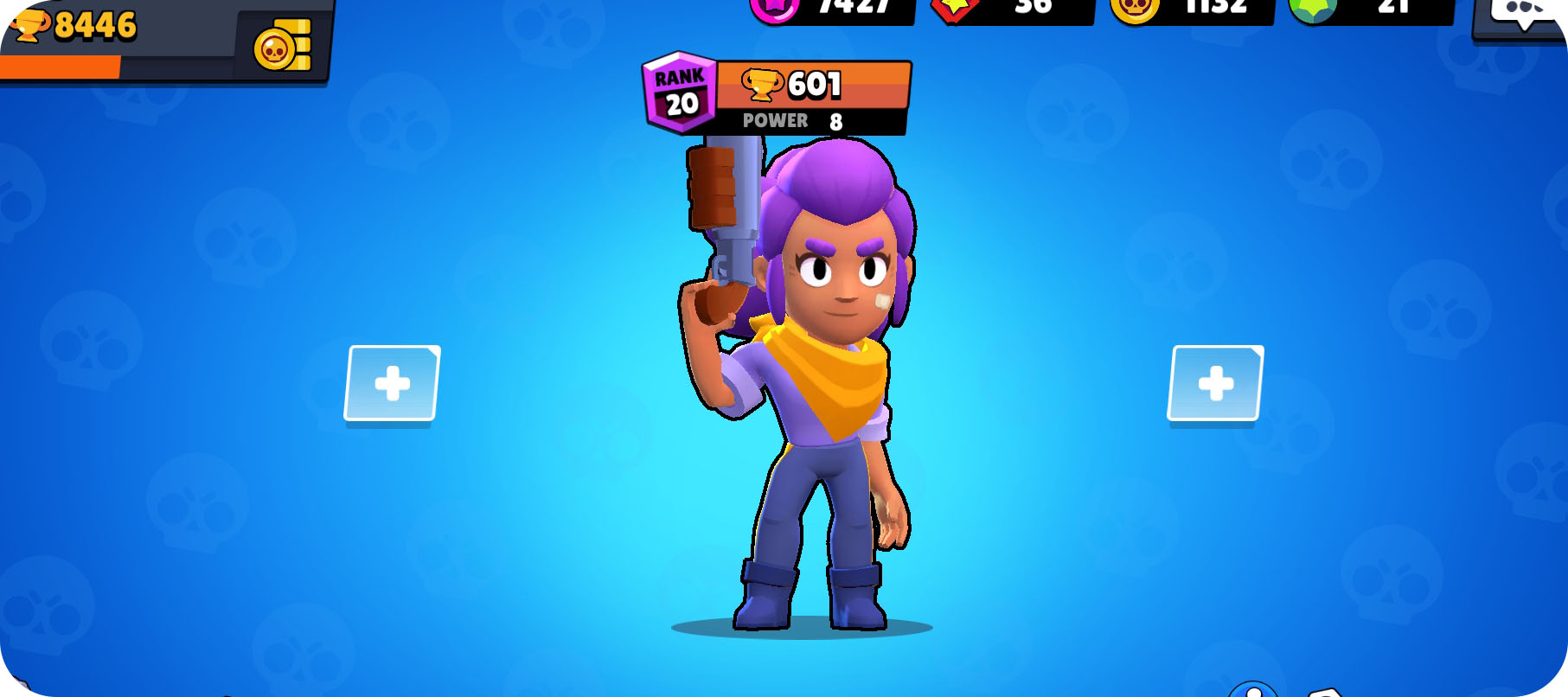 파워레벨도 8뿐이 안되고 그 흔한 스타파워도 하나 없지만,적절한 움직움의 손놀림과 상황 판단이 된다면 충분히 600개 이상 트로피 달성 가능하다고 생각합니다.약간 쉘리에 대해 부연설명을 더 하겠습니다.브롤스타즈를 처음 시작하게 되면기본 브롤러로 소유하기때문에 상대적으로 다른 브롤러 보다 좋지 않다는 편견이 있을 수 있습니다.그러나 막상 개인트로피 400개이상 달성하고 운용을 해보시면 쉘리만큼 만능이 캐릭이 없다고 생각합니다.일단 중장거리에서 상대방을 견제하거나 원하는 쪽으로 몰이를 할때에도 좋고,그러다보면 궁극기가 가득차서 이동하는 쉘리는 그 어떤 브롤러 보다도 껄끄럽고 부담스러운 상태가 됩니다.궁극기(특수공격)가 있는 쉘리를 가까운 거리에 만난다면 아무리 체력이 높은 브롤러라도 궁극기를 발사하여 맞는 동시에 경직이되고,일반공격으로 아주 짧은 시간안에 또 다시 궁극기가 채워지기때문에 궁극기를 두번이상 어쩔수 없기 맞기때문에 패배할수 뿐이 없는 상황이 됩니다.또한 벽이나 장애물 뒤에 숨어있어도 궁극기 발사시 같이 파괴가 되어 유리한 상황에서 상대방을 제압 할 수 있게 됩니다.비상시에는 벽을 부수고 도망 가기에도 좋습니다.이렇게 괜찮은 브롤러를 입문용으로 기본제공하는 것은 처음 게임을 시작하는 분들에게 재미와 흥미유발을하고 지속적으로 플레이 하기 위한 게임 제작자분의 의도도 깔려있다고 생각합니다.저도 다른 브롤로 게임을 하다가 계속 패배하고 스트레스를 받을때 쉘리를 선택해서 패배했던 분풀이를 종종하기도 합니다.