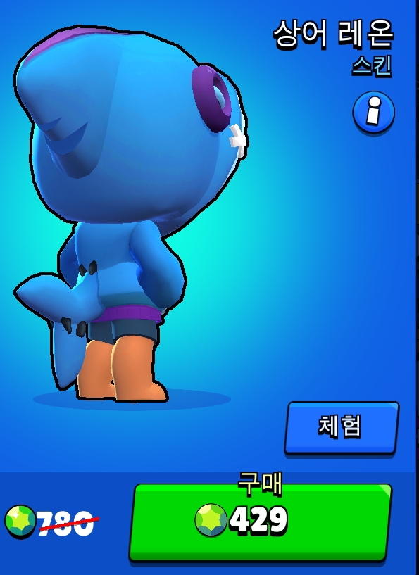 인기가 있는 전설 브롤러인지 지금은 상점에서 보석으로 상어 레온 신규 스킨이 특가상품으로 구매가 가능한 상태로 나옵니다. 무과금 유저들도 구입기회가 올 수 있도록 지난번 아이리스 타라와 핑크 파이퍼처럼 스타 포인트로 구매할 수 있는 기회가 생기지 않을까 예상해봅니다. 22 랭크 구간에서 자주 만나는 전설 브롤러가 레온인데요, 대결 상대가 되면 여간 까다로운 상태가 아닐 수 없습니다. 기본적인 이동속도도 빠른 편이면서 멀리서 던지는 수리검도 아프고 가까이서 맞는 수리검도 많이 아프더군요. 레온가 엉키지 않도록 되도록이면 처음에 대결을 피하려고 하지만 전설 등급의 성능까지 좋은 브롤러이니 다른 여러 구간에서 어쩔 수 없이 만나는 경우가 많았습니다. 주의 깊게 견제하지 않으면 그냥 패배로 이어지는데, 귀여운 레온 상어 스킨까지 나오고 앞으로도 당분간은 꾸준히 사랑받는 전설 브롤러이지 않을까 합니다.