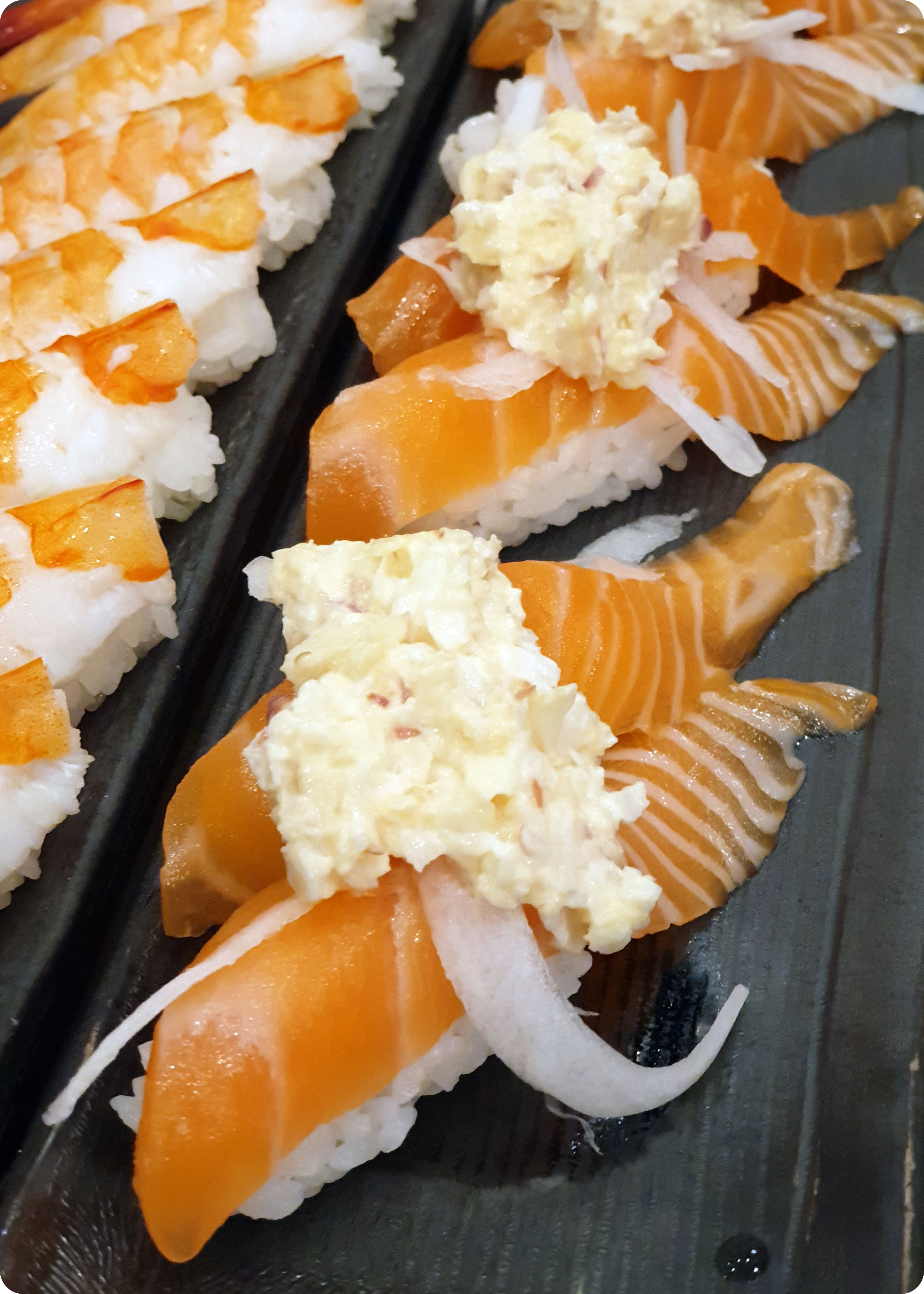 연어 초밥의 신선한 연어와 하얀 소스의 조합이 계속 감칠맛이 나면서 순식간에 먹게 되더군요.