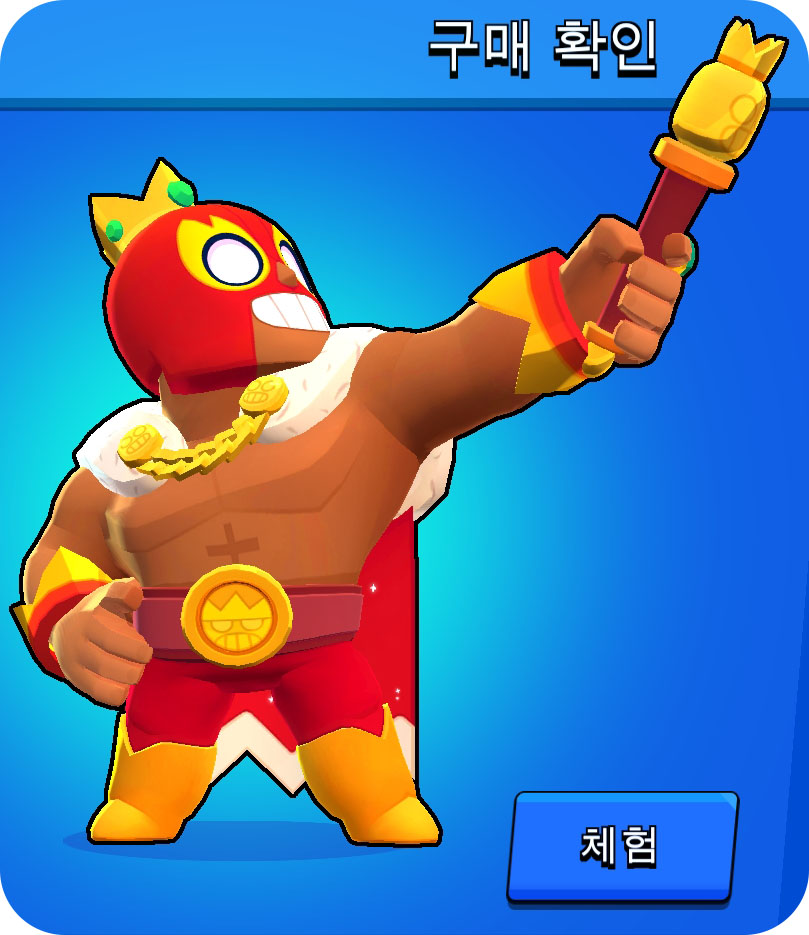 엘프리모가 리모델링 업데이트가 되면서 추가로 새롭게 공개된 엘 레이 프리모의 모습니다. 아이언맨과 비슷한 색감인 빨강과 노랑으로 설정이 된 듯합니다. 마치 프로레슬링 챔피언의 설정처럼 화려한 망토와 왕관, 반지 요술봉? 까지 착용이 이루어져 있습니다.