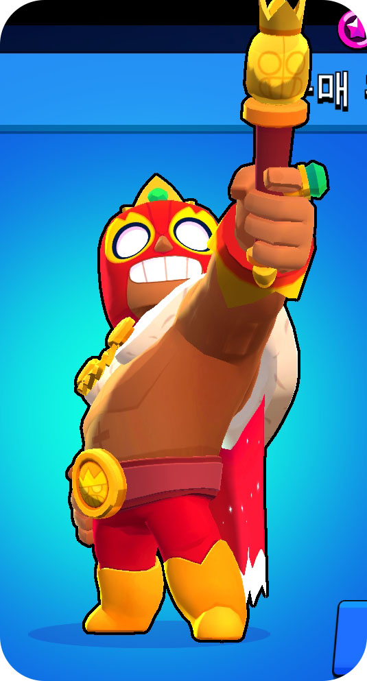 엘프리모의 새로운 스킨인 엘 레이 프리모의 전용 모션도 있었습니다. 게임상에서는 기본적인 동작들은 동일했지만 처음 브롤러 선택 화면에서 선택되어 메인 화면으로 나오게 되면 덤블링을 하는 모습 등을 볼 수 있었습니다. 뭔가 신나면서 코믹한 이미지를 주는 거 같았습니다.