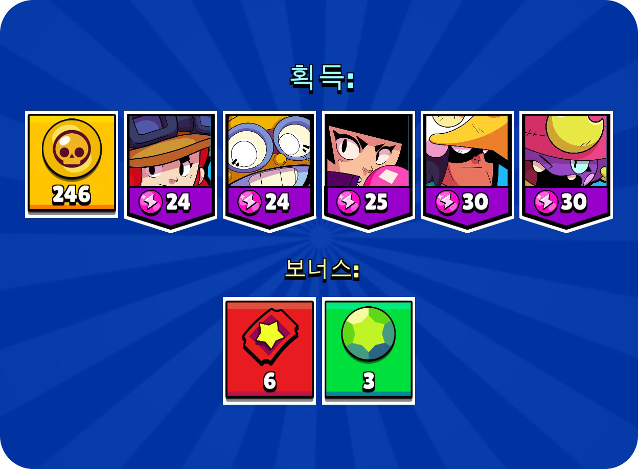 브롤스타즈 트로피 10,000개 돌파 메가 상자에서 획득한 내용입니다. 코인 246개, 샌디, 칼, 비비, 보, 진의 경험치 pp와 이벤트 티켓, 보석이 들어있었습니다. 종합 선물세트처럼 많은 것들이 들어있었지만, 기다리고 원하던 브롤스타즈의 전설 브롤러는 단 한명도 있지않았습니다. 트로피 10,000개 돌파 메가 상자를 개봉하였지만, 아쉽게도 전설급 브롤러는 어느 하나 나오지 않은 상태였습니다. 상자 정보에서 전설 브롤러가 나올 확률을 확인해 보면 무려 0.1007%인 상태였습니다. 일반 상자는 상자모으기로 수십상자를 개봉하였고, 대형 상자도 최대한 상자를 모아 개봉하였지만 아직까지도 전설 브롤러는 나오지 않은 상황입니다. 과금을 하지 않은 상태에서 언제쯤 전설 브롤러가 나타나는지 계속 트로피를 획득하면서 달려가 보겠습니다. 전설 브롤러가 나온다면 제일 먼저 포스팅 하여 공개하도록 하겠습니다. 브롤스타즈를 같이 하시는 모든 분들이 원하는 전설 브롤러를 획득하여 더욱 재미 있게 브롤스타즈를 즐겨셨으면 좋겠습니다. 감사합니다. 브롤스타즈 트로피 10,000개 돌파 메가 상자 개봉기였습니다.
