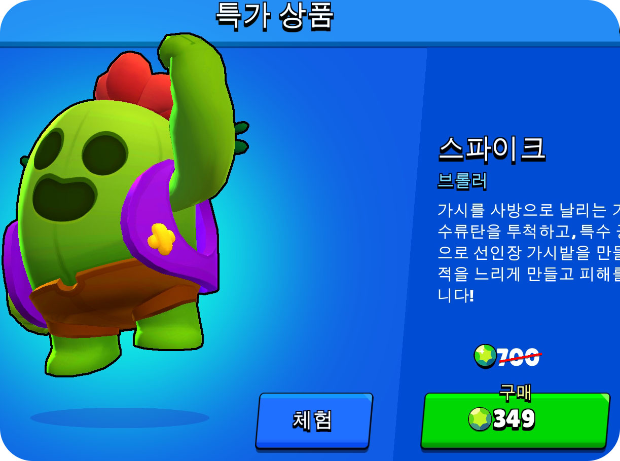 아직도 얻지 못한 브롤스타즈 전설 브롤러 스파이크가 상점에 특가로 나와있는 상태입니다. 상점에 있는 스파이크의 기운을 받아 트로피 10,000개 돌파 메가 상자를 개봉하여보겠습니다.