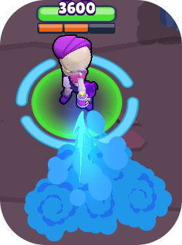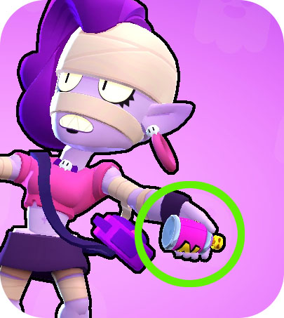 브롤 엠즈의 특수 공격입니다. 엠즈의 특수공격은 대미지 범위 안에 있는 모든 상대 브롤러에게 200의 대미지를 지속적으로 주고, 쉘리의 쉘 쇼크를 맞은거 과 비슷하게 움직임을 느리게 만들어 줍니다. 가까이에 붙은 엠즈가 특수공격을 사용하고 공격해 온다면 피하는거나 도망치는거 자체가 거의 불가능에 가깝기 때문에 특수공격 가지고 있는 상태의 엠즈는 항상 주의해야 할 듯합니다. 쉘리의 쉘 쇼크와 샌디의 특수 공격이 합쳐져 있는 듯한 엠즈의 특수 공격이네요.