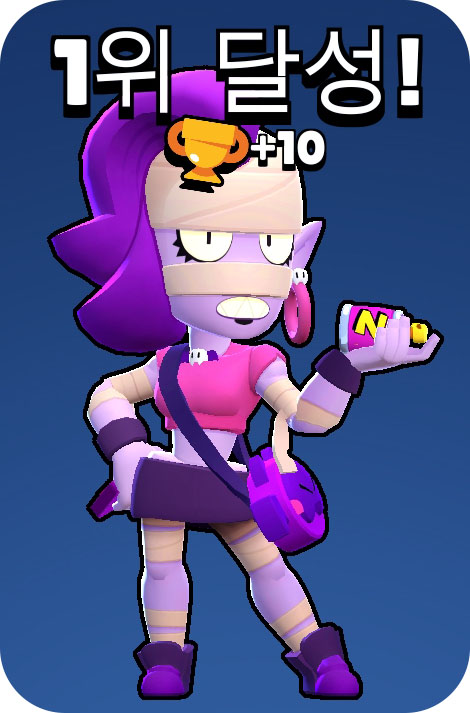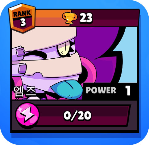 트로피 8000개를 획득하면 무료로 신규 브롤러 엠즈를 획득할 수 있습니다. 저는 최근에 트로피 10000개를 돌파하여 브롤러 선택창에 자동으로 추가가 된 상태였습니다. 다크 하지만 명량한 분위기가 엠즈의 기본적인 모습인 듯합니다.