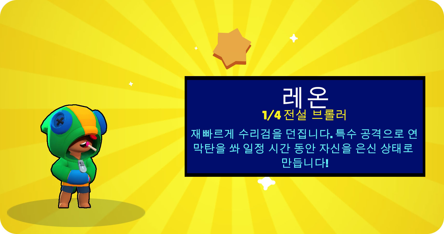 안녕하세요. 트로피 11000개를 넘어가고 있는데도 전설 브롤러가 단 한 명도 없던 계정이었는데, 드디어 그가 왔습니다. 일반적인 상자 모으기 스킬에도 그렇게 전설 브롤러 한 명이 나오지 않았었는데 이번 12월 업데이트 전에 레온이 선물처럼 나타났네요.