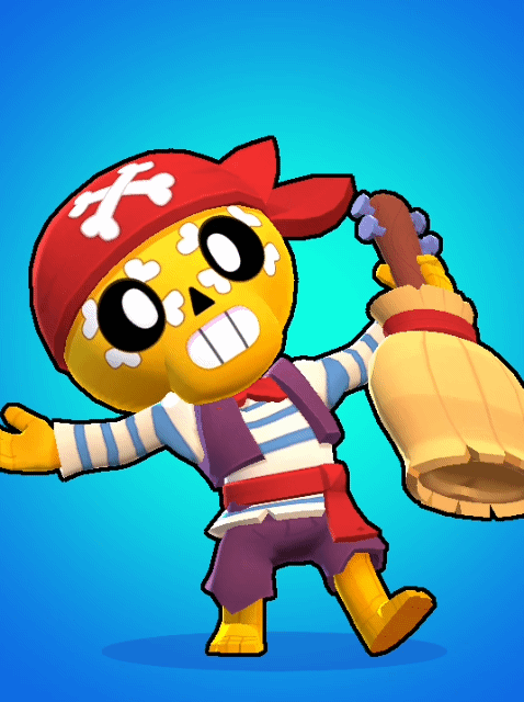 브롤리데이라는 설정으로 신규 스킨 해적포코가 공개되었습니다. 포코는 얼굴 자체가 해골이라서 해적이라는 설정에 어떤 브롤러 보다도 잘 어울리네요. 머리에는 뼈다귀가 엑스자로 그려진 붉은색 두건을 착용하고 있고, 기본 장착 무기는 빗자루 모양을 하고 있는 기타를 들고 있습니다.