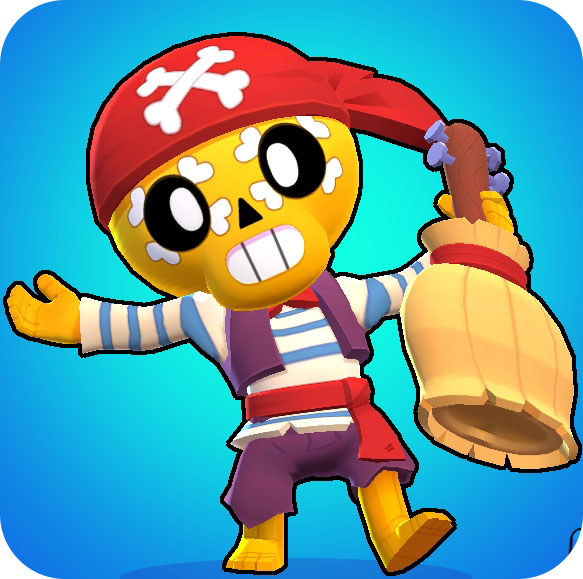 브롤리데이라는 설정으로 신규 스킨 해적포코가 공개되었습니다. 포코는 얼굴 자체가 해골이라서 해적이라는 설정에 어떤 브롤러 보다도 잘 어울리네요. 머리에는 뼈다귀가 엑스자로 그려진 붉은색 두건을 착용하고 있고, 기본 장착 무기는 빗자루 모양을 하고 있는 기타를 들고 있습니다.