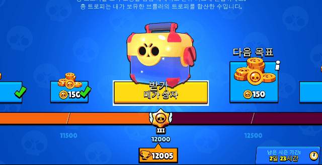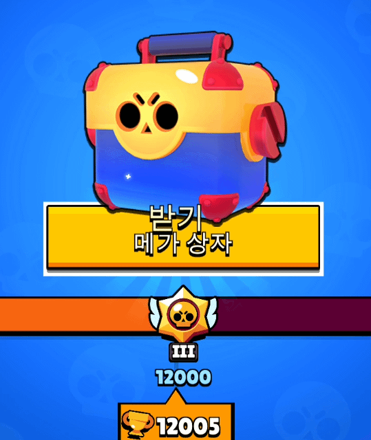 누적된 트로피가 12000개를 돌파하게 되면 메가 상자를 선물로 받게 되는데요, 이미 모아놓은 일반 상자가 20개 이상 있었고, 대형 상자도 하나가 있는 상태여서 이번에 전부 상자들을 오픈하면 12월에 공개된 영웅 브롤러 비가 등장하지 않을까 조심스럽게 예상을 해 보았습니다. 그리고 상자를 클릭하여 오픈해보니.