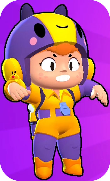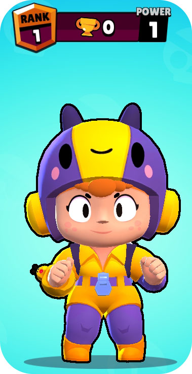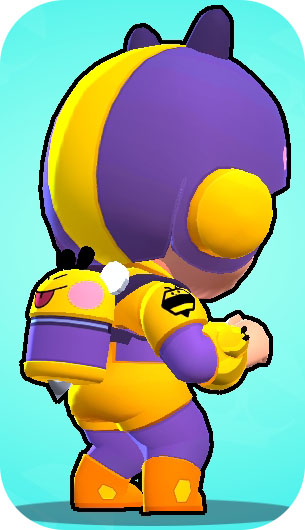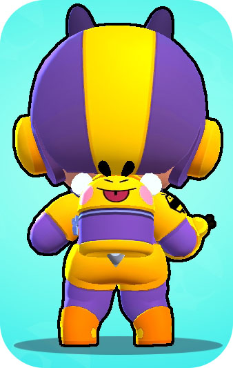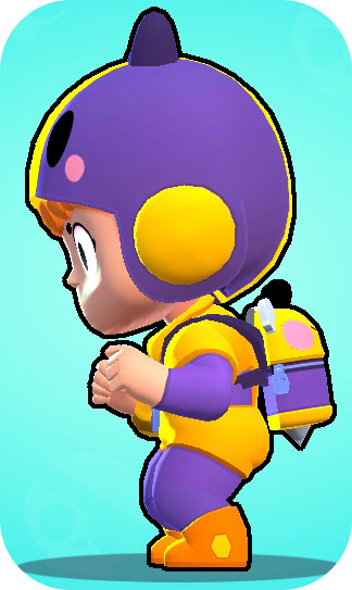 새로운 영웅 브롤러 비의 뒷모습입니다. 비가 착용하고 있는 가방 안에는 항상 옆에서 날아다니는 벌 친구가 들어있네요. 표정이 귀여운 거 같습니다.